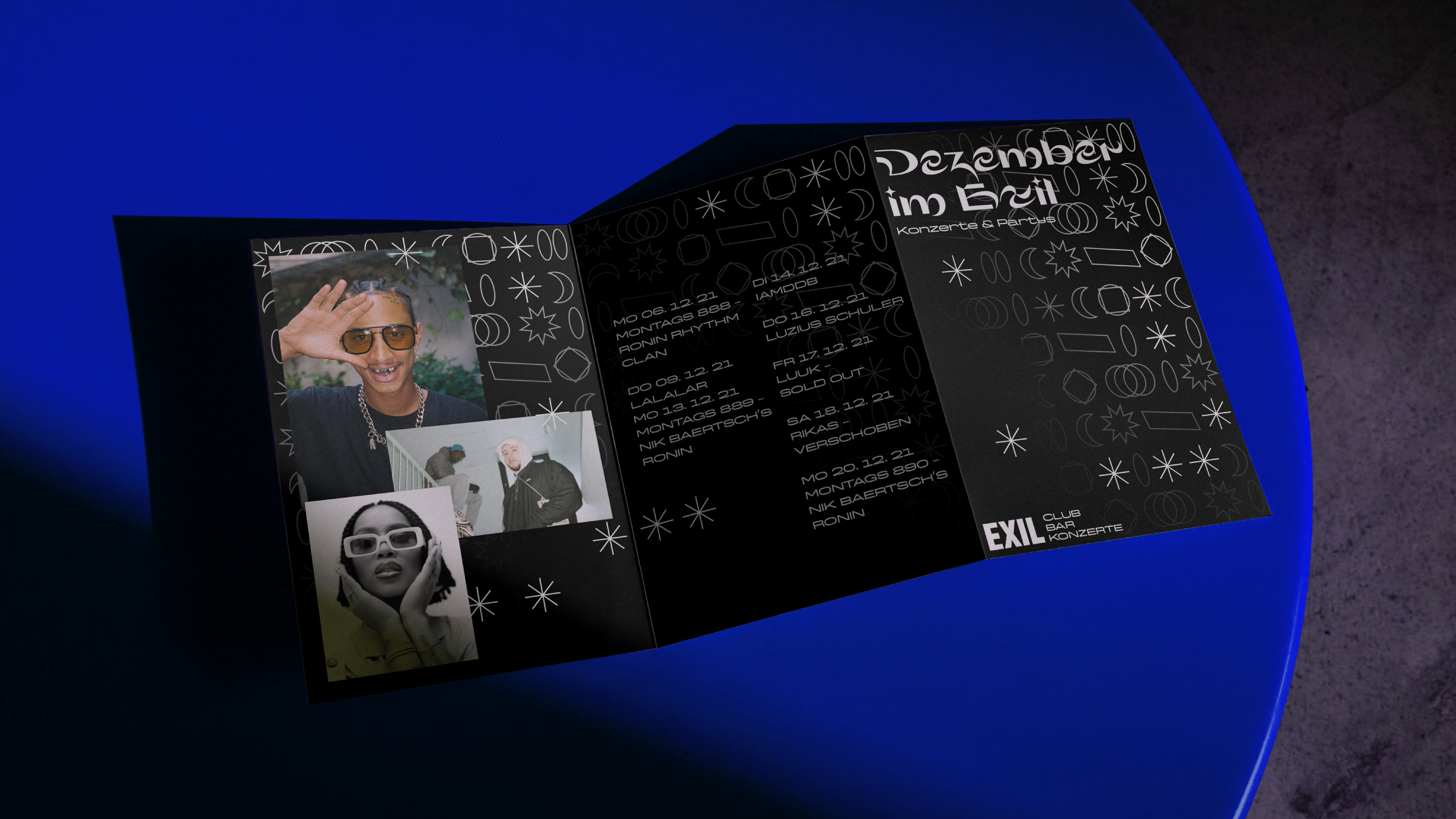 Der Exil Klub ist eine vielseitige Event- und Partylocation in Zürich. Während unseres Marketing- und Kommunikationsmoduls hatten wir die Gelegenheit, eine fiktive Neugestaltung und ein Programm für den Club zu erstellen. Basierend auf den realen Inhalten habe ich eine plakative Werbekampagne und die neue Website entworfen. Ich habe das ursprüngliche Logo genommen und es erweitert. Im Mittelpunkt des neuen Looks stehen geometrische Formen und Muster, die für das vielfältige Programm und Nachtleben stehen.